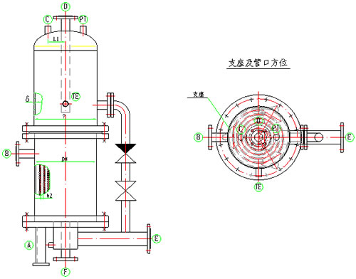 A:排污口 B:一次介質(zhì)進(jìn)口 C:溫控閥口 D:二次介質(zhì)出口 E:二次介質(zhì)進(jìn)口F:一次介質(zhì)出口 PI:壓力表口 TE:溫度計(jì)口